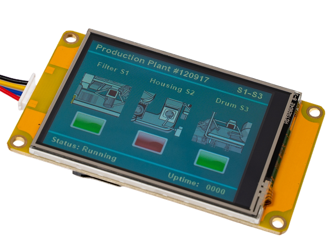 На плате в HMI-дисплеях распаян собственный драйвер, который который отвечает за отрисовку графики, обработку сигналов с тачскрина и общение с внешними контроллерами по интерфейсу UART. Это даёт возможность не передавать массивные графические данные между экраном и управляющей платой, соответственно освобождая ценные ресурсы внешнего контроллера.