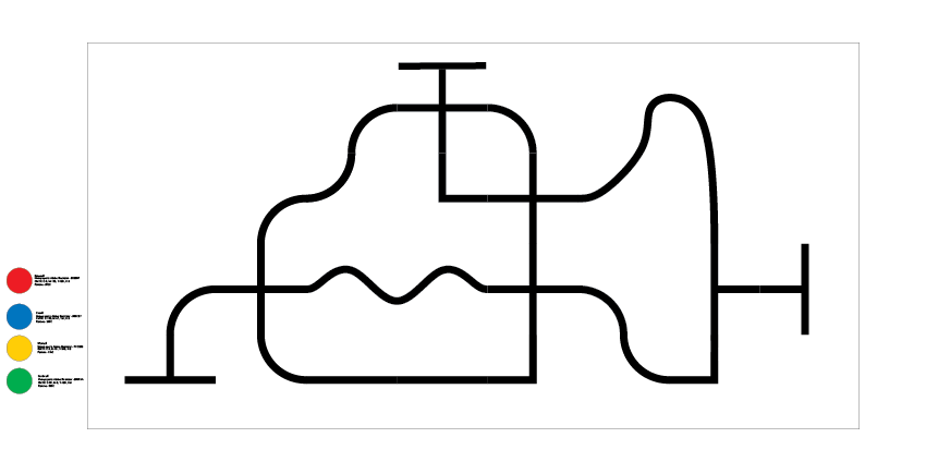 3.На поле вдоль линии располагаются дополнительные цветные элементы (метки),каждая метка указывает на направление движения робота на следующем за меткой перекрестке, например, красная -поворот вправо, желтая -влево, синяя -проезд вперед.