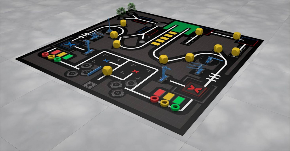 Соревновательное поле с элементами MakeX Starter Arenas Kit для подготовки и участия в международных соревнований роботов MakeX Starter (регламент 2018г.)