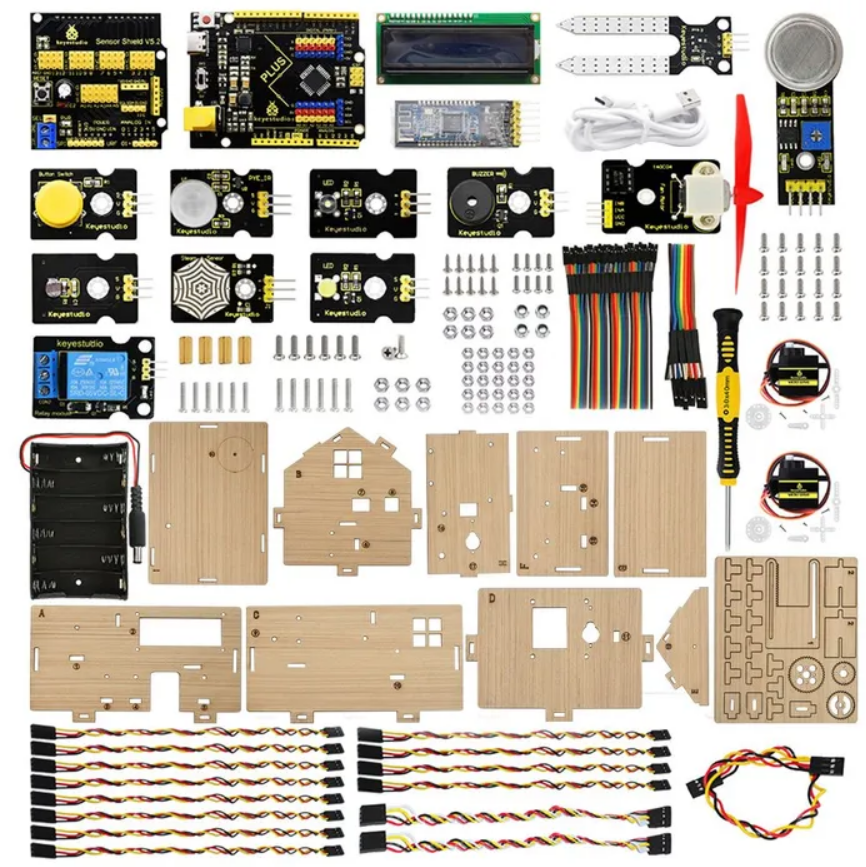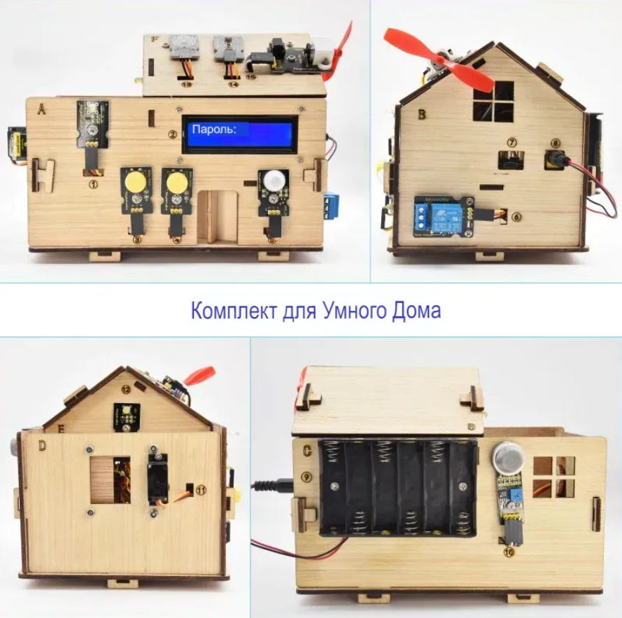 Этот обучающий комплект для умного дома, основанный на платформе Arduino. Он имитирует настоящий умный дом и демонстрирует уютную и комфортную жизнь для людей.