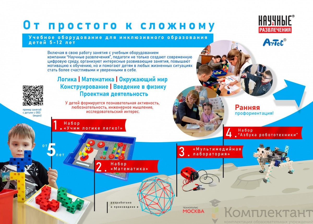 Для перехода на следующие ступени развития «от простого к сложному» вы можете ознакомиться с учебным оборудованием для инклюзивного образования детей 5-12 лет: