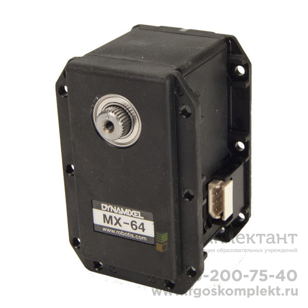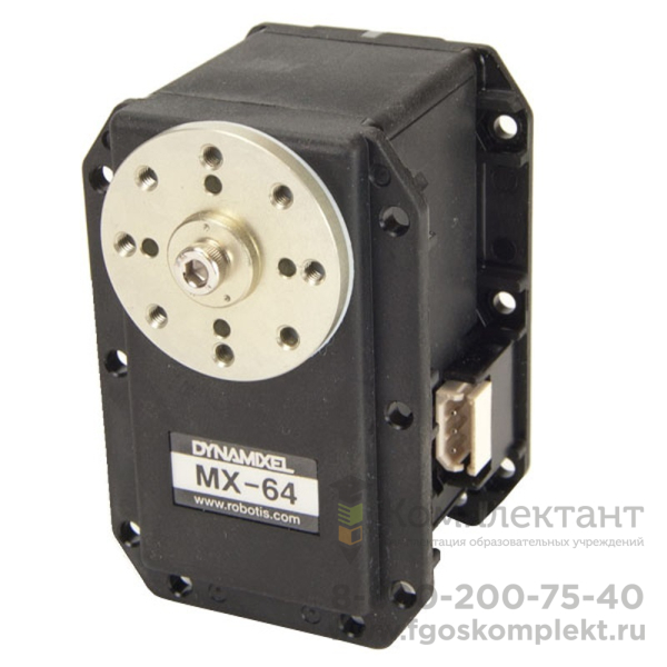 Сервомотор Dynamixel производителя Robotis. Удерживающий крутящий момент 5.5-7.3 Нм. Cкорость холостого хода 58-78 об/мин. Интерфейс подключения TTL/RS-485.