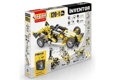 Большой конструктор для настоящих маленьких инженеров и изобретателей. Набор позволяет собрать 120 уникальных моделей, которые работают на специальном электродвигателе (он поставляется в комплекте). В коробке находится инструкция по сборке 4-х моделей, а ещё 116 можно скачать на официальном сайте Engino.