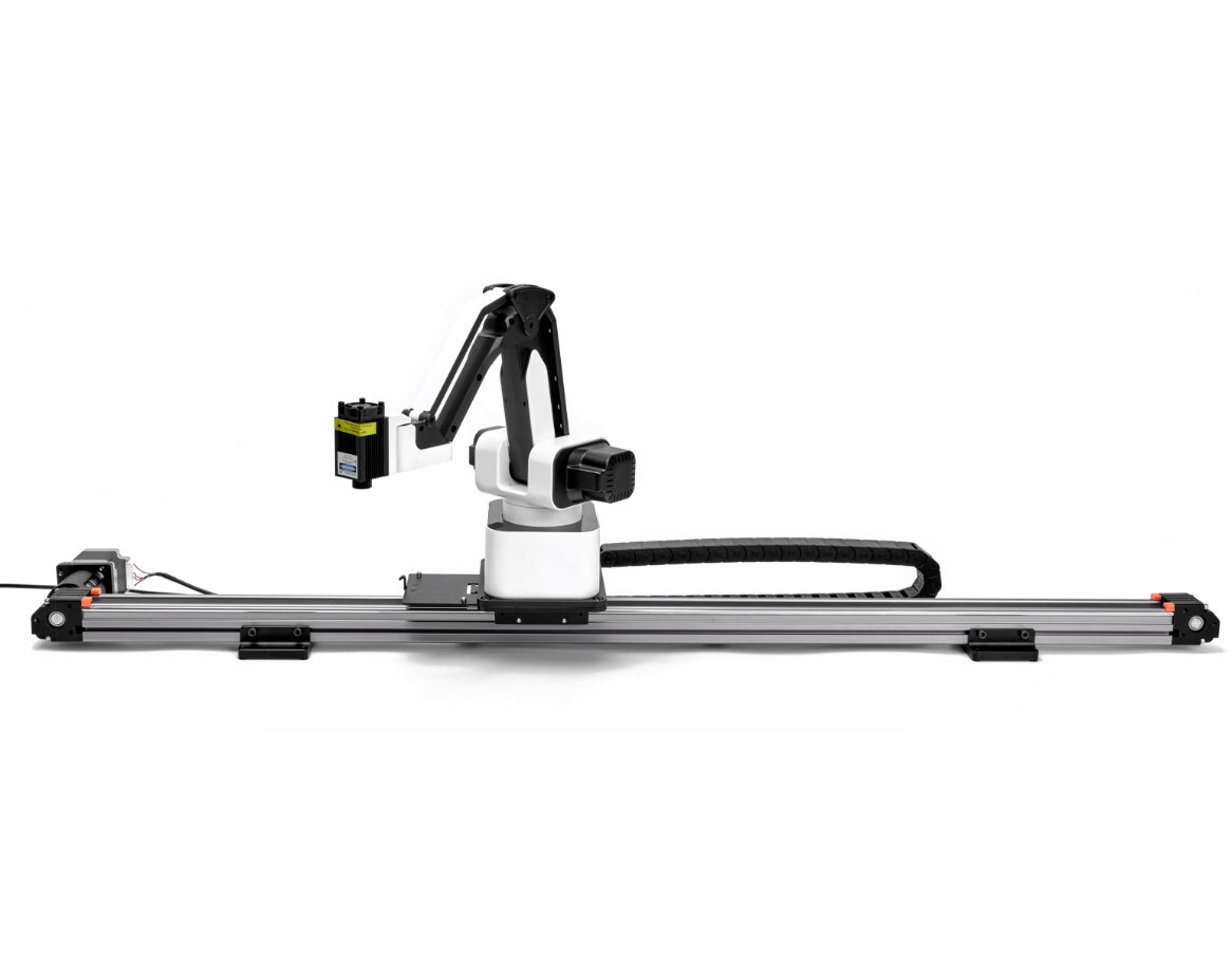 Хотите получить больше возможностей для движения? Не проблема! Расширьте диапазон работы манипулятора в 5 раз. Комплект линейных направляющих - дополнительное оборудование для вашей роборуки. Он позволит расширить рабочее пространство, улучшить четкость работы, а также увеличить грузоподъемность робота. Установите четырёхосевой манипулятор на линейные направляющие и расширьте площадь работы в горизонтальном направлении: усовершенствованный робот может рисовать, писать и заниматься лазерной гравировкой с невероятной точностью. Вы можете интегрировать направляющие в уже действующий проект. Не упустите возможность создать много нового и интересного.