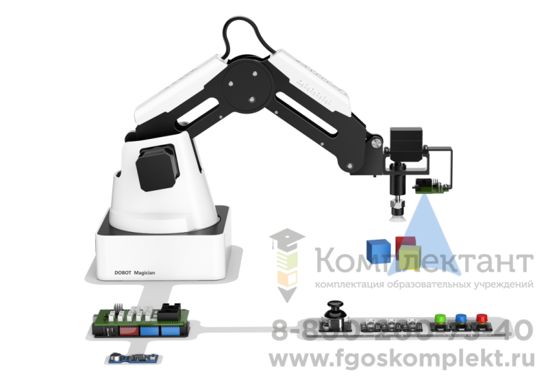 Подключите к инженерной платформе Dobot внешний программируемый контроллер и дополнительные сенсоры и модули для раширения возможностей.