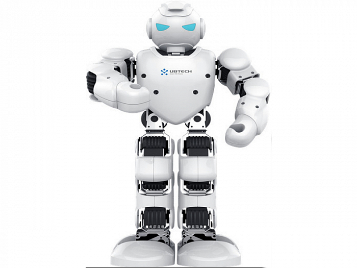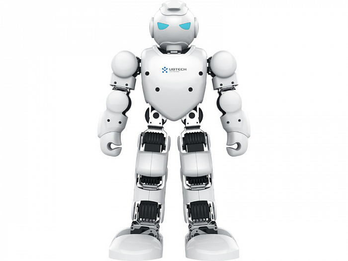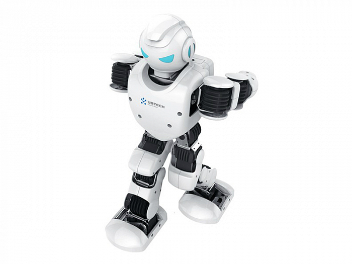 Интерактивный робот с искусственным интеллектом словно сошел с экранов телевизоров, став воплощением задумок авторов фантастических фильмов. Разумная машина наделена искусственным интеллектом, она станет не просто игрушкой, а настоящим членом вашей семьи. Она не только обладает удивительной технологией взаимодействия с человеком, но и способна обучаться. Этот робот, конечно, не приготовит кофе и не помоет посуду в доме, но станет забавным другом, с которым каждое занятие станет увлекательным развлечением. Гуманоид не только обладает привлекательной внешностью, но и находит общий язык как с детьми, так и со взрослыми. Программное обеспечение позволяет легко изменять его поведение, а при скачивании дополнений с официального сайта робота можно усовершенствовать, научив его новым движением или речи. Умная машина с внешностью футуристических роботов превосходно имитирует движения человека. Это достигается благодаря 16 запатентованным сервоприводам, каждый из которых используется в роли сустава и отвечает за движение каждой конечности. Так, робот может свободно жестикулировать, ходить, танцевать, играть в футбол и демонстрировать боевые стойки и даже выполнять акробатические трюки. Для изготовления интерактивного робота были использованы только высококачественные материалы - ABS-пластик и алюминий. Конструкция собрана таким образом, что система полностью защищена от замыканий. Все соединения скрывает прочный корпус, поэтому во время эксплуатации исключается вероятность появления царапин и удара током. Кроме того, предустановленные световые эффекты делают робота более ярким и дарят множество положительных эмоций взрослым и детям. Задавать команды разумной машине можно сидя на диване и держа в руках смартфон или планшет. Bluetooth-соединение дает возможность удобно управлять гуманоидом на расстоянии до 10 метров. Модель совместима с устройствами, функционирующими на операционных системах с Android, IOS, Windows и Mac OS. Установленная на вашем гаджете программа имеет интуитивно понятный интерфейс, который достаточно легко освоить. Кроме того, бесплатное программное обеспечение регулярно обновляется. Что дает возможность пользоваться самой последней версией. Загрузив музыку на внутреннюю память устройства и обучив робота новым движениям, он произведет незабываемое впечатление на любой вечеринке. С тщательно проработанной системой визуального программирования вы почувствуете себя настоящим гением создавать новые движения, изменять поведение и много другое. Благодаря установленной энергоемкой батарее, робот Ubtech Alpha 1PRO будет удивлять своими интерактивными способностями целый час без подзарядки. Восполнить ресурс батареи можно за минимальный промежуток времени, подключив умную машину к сети. Робот Ubtech Alpha 1PRO - воплотившаяся в реальность фантастика