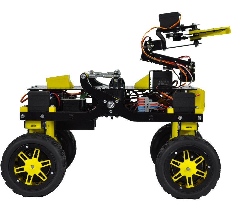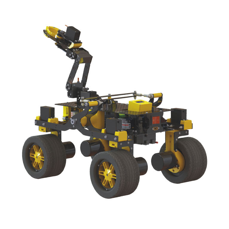 Робототехнический конструктор на базе четырехколесного шасси. На робота установлено навесное оборудование - трехзвенный манипулятор, благодаря которому появляется возможность захватывать объекты различной формы из труднодоступных мест. Робототехнический конструктор позволяет изучать основы программирования автономных мобильных роботов.