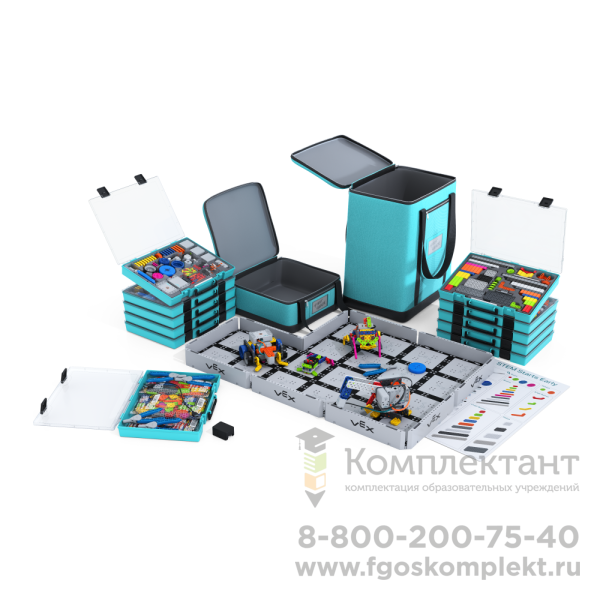 VEX GO Комплект для класса Kit 5-pack with Storage (5 наборов) – идеальное решение для обучения основам робототехники. Каждый набор включает детали для сборки моделей и инструменты для творчества, стимулируя интерес к науке и инженерному делу у детей.