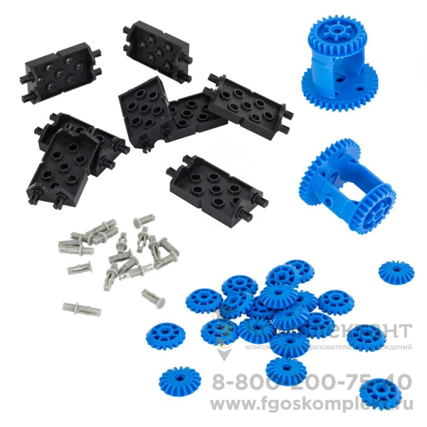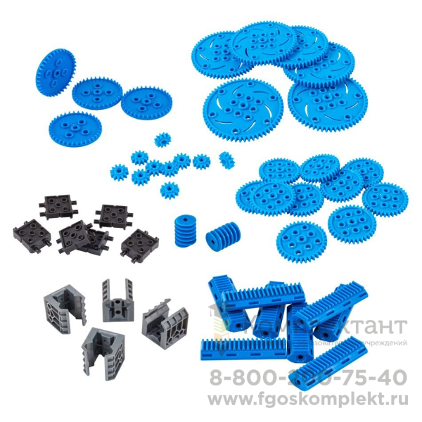 Набор позволяет создавать планетарные и дифференциальные зубчатые передачи, зубчатые передачи для линейного перемещения.