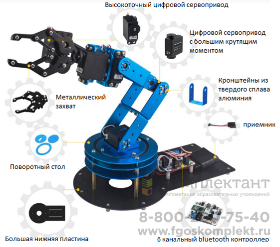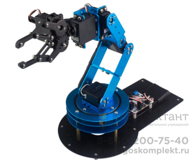Роботизированный манипулятор с 6 степенями свободы. Детали выполнены из прочного алюминиевого сплава. В комплекте есть джойстик и устройство захвата. Набор подойдет для одновременной работы одного-двух учеников в возрасте от 12 лет.