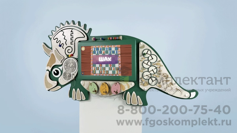 Все дети любят динозавров, в них есть что-то таинственное, древнее, фантастическое. Именно по этому мы разработали интерактивный бизиборд Динозавр Визи.