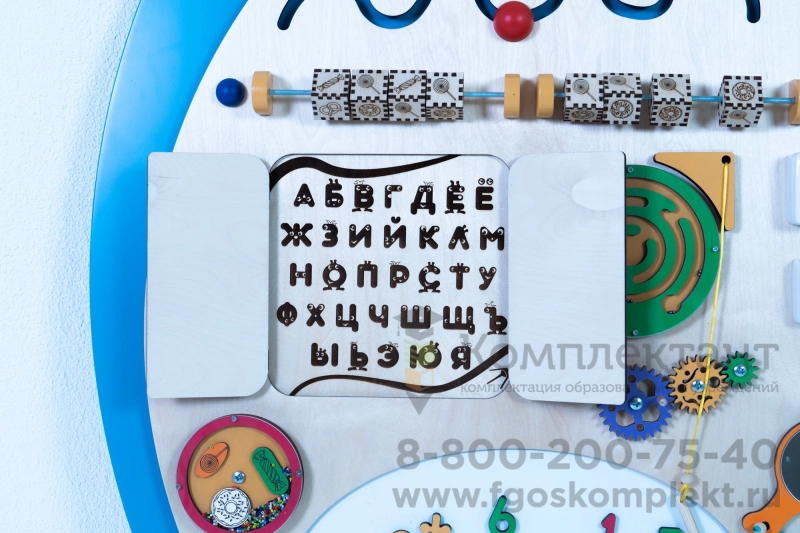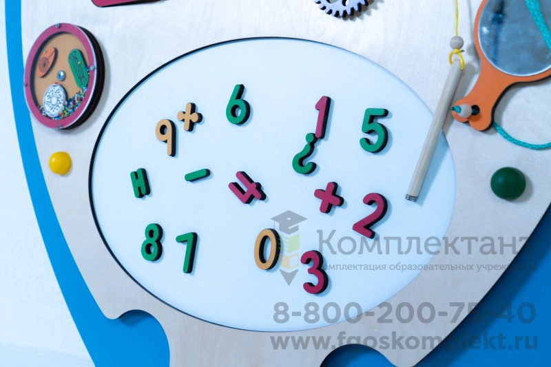 Комплектация: Бизиборд из МДФ с трехслойным покрытием безопасной краской на водной основе