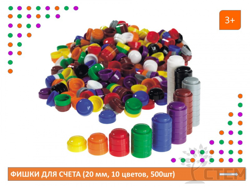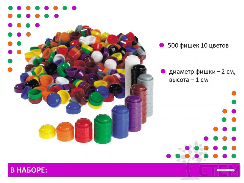 Набор фишек для счета поможет ребенку освоить азы математики и овладеть навыками счета, классификации цвета, сложения, вычитания.