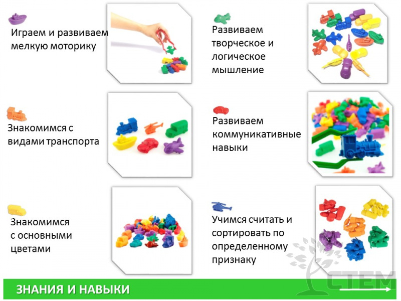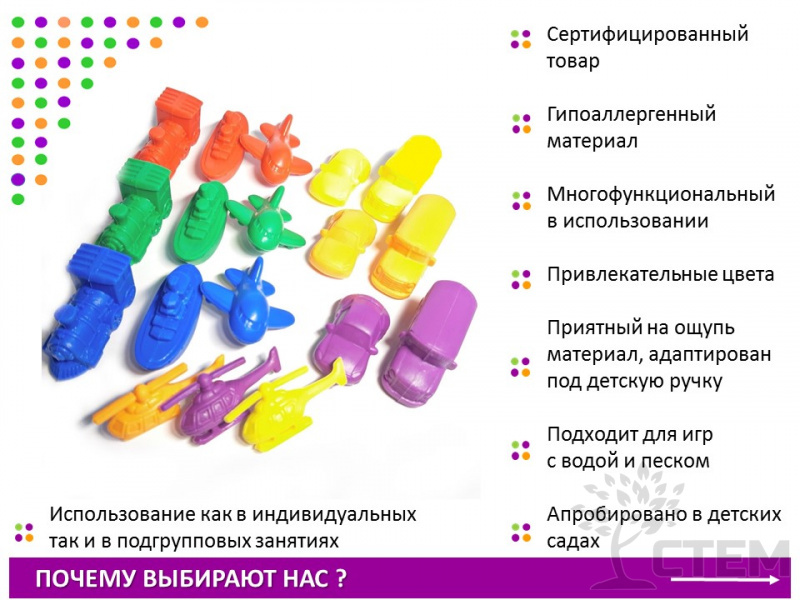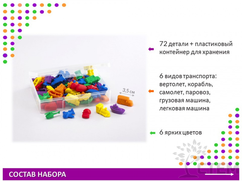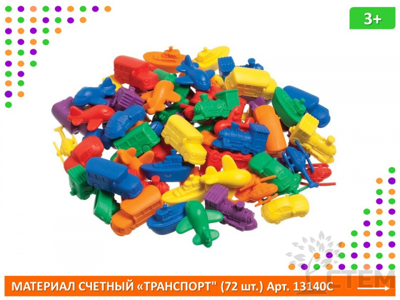 Математический набор "Транспорт" – это 72 красочные счетные фигурки, представленные в 6 видах и 6 цветах. Идеальное пособие для обучения и развития детей, способствующее легкому усвоению основ математики и логического мышления.