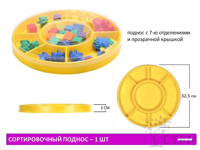 - большой сортировочный поднос с 7-ю отделениями и прозрачной крышкой (диаметр подноса - 32 см),