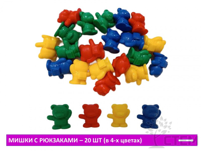 - кубики, фишки, фигурки: мишки с рюкзаками и рыбки.