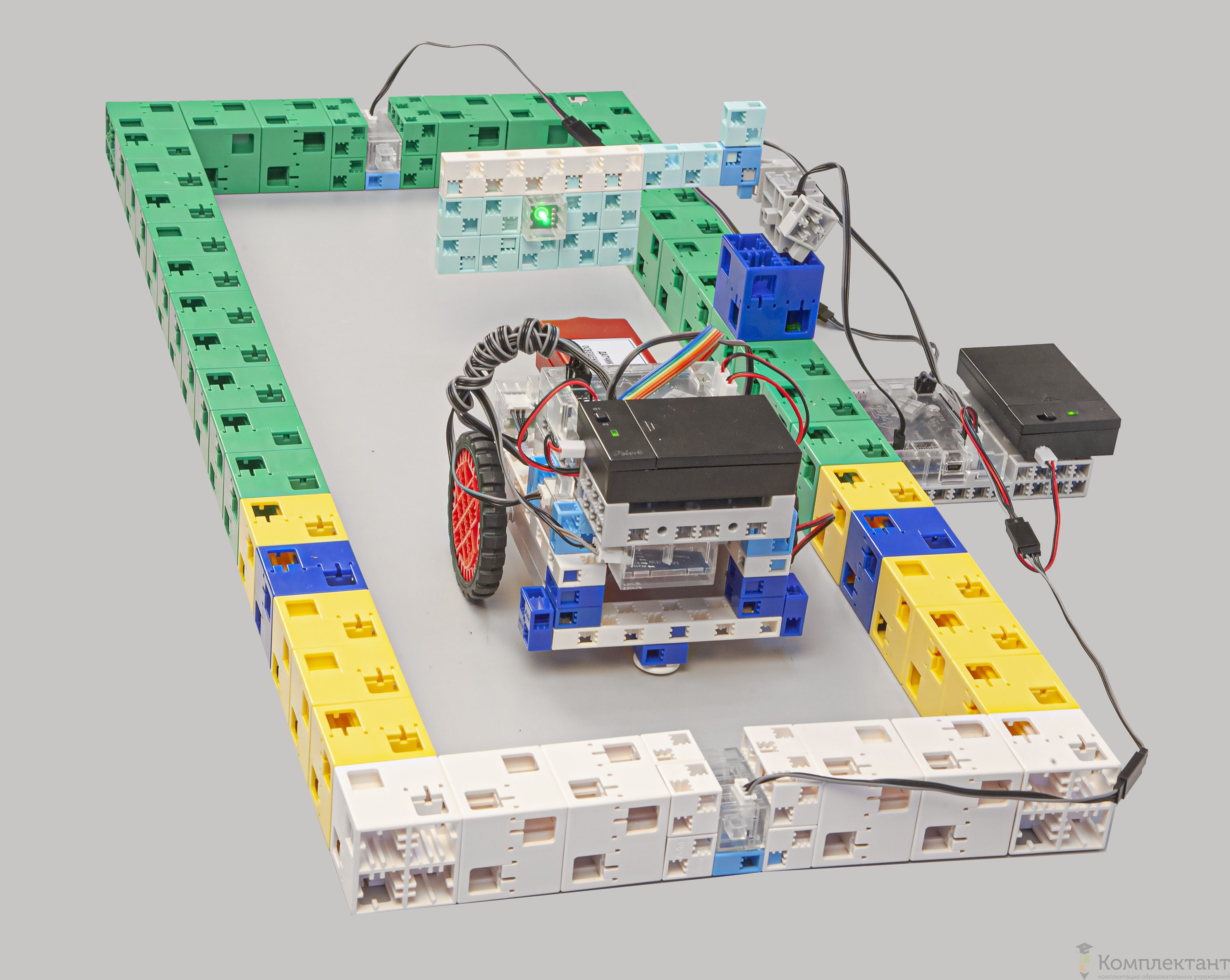 Набор позволяет использовать модель робота на базе Arduino–совместимого контроллера, а также собрать полигон из блоков конструктора и электронных компонентов.