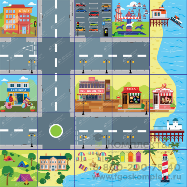 Поля-коврики для ЛогоРобота позволяют организовать увлекательные занятия по различным тематикам. Поля размечены на квадратные секторы, стороны которых соответствует 1 шагу робота(15 см).
