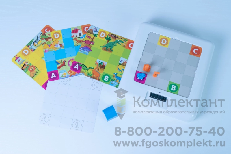 Комплектация: Программируемая магнитная платформа с фигурками, 4 тематические карты с разными маршрутами, Дополнительные “пустые” поля для составления собственных маршрутов, Комплект из 30 карточек с готовыми заданиями, Удобная коробка для хранения