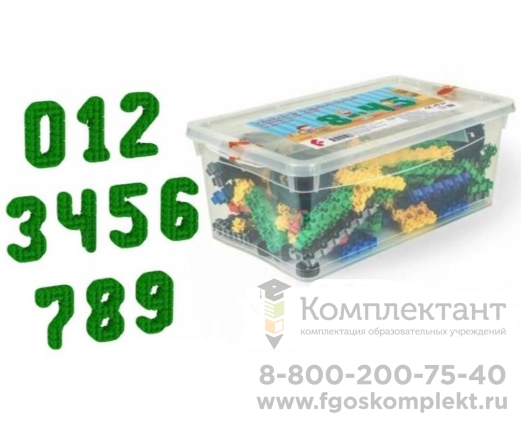 Набор для составления числовых выражений включает в себя: 55 деталей конструктора для сборки одной любой цифры высотой 16 см, карты-схемы сборки моделей (в электронном виде).