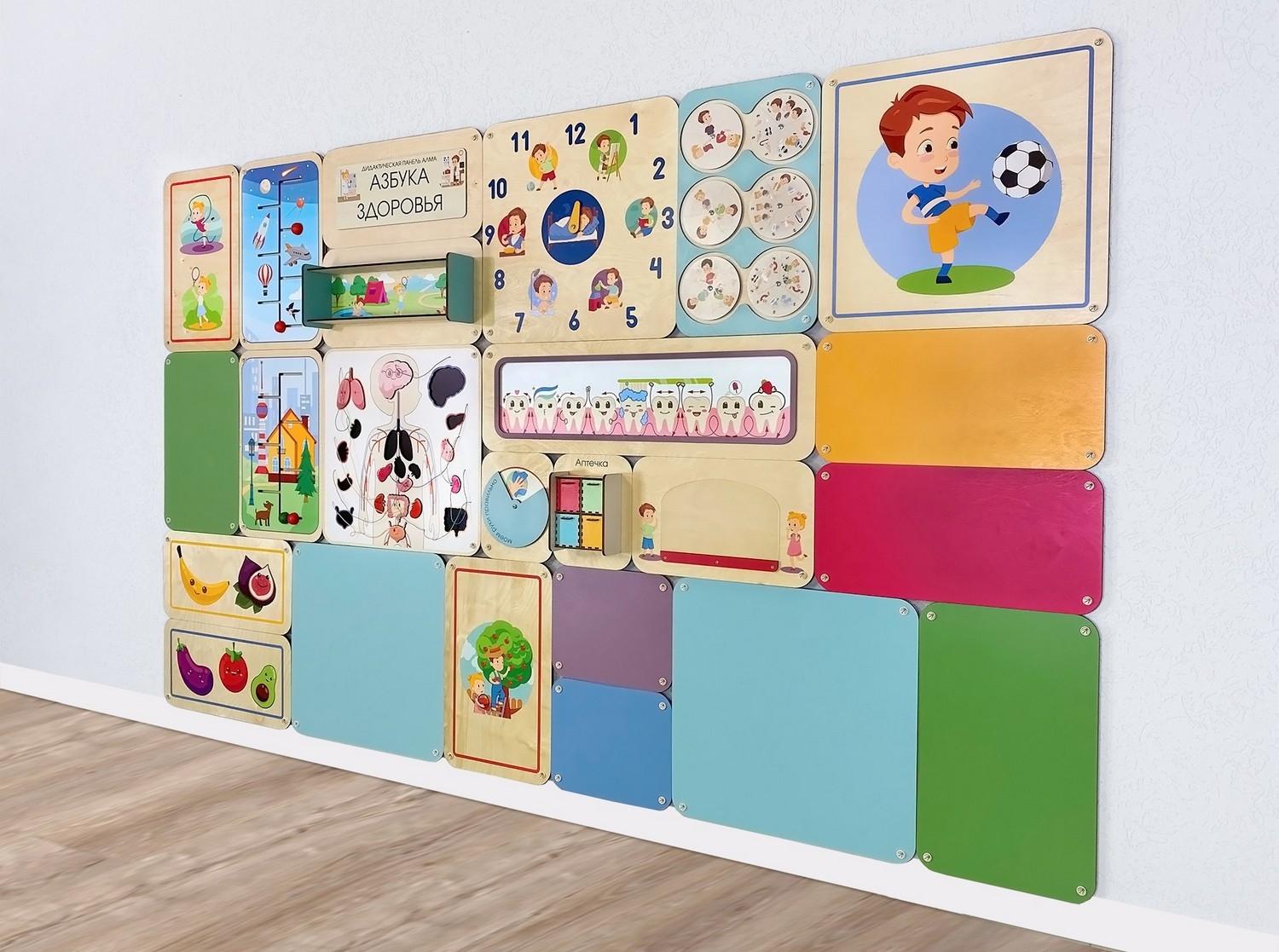 Набор дополнительных модулей для комбинации с дидактическими настенными панелями АЛМА. Отличное интерьерное решение для оформления помещений в едином стиле.