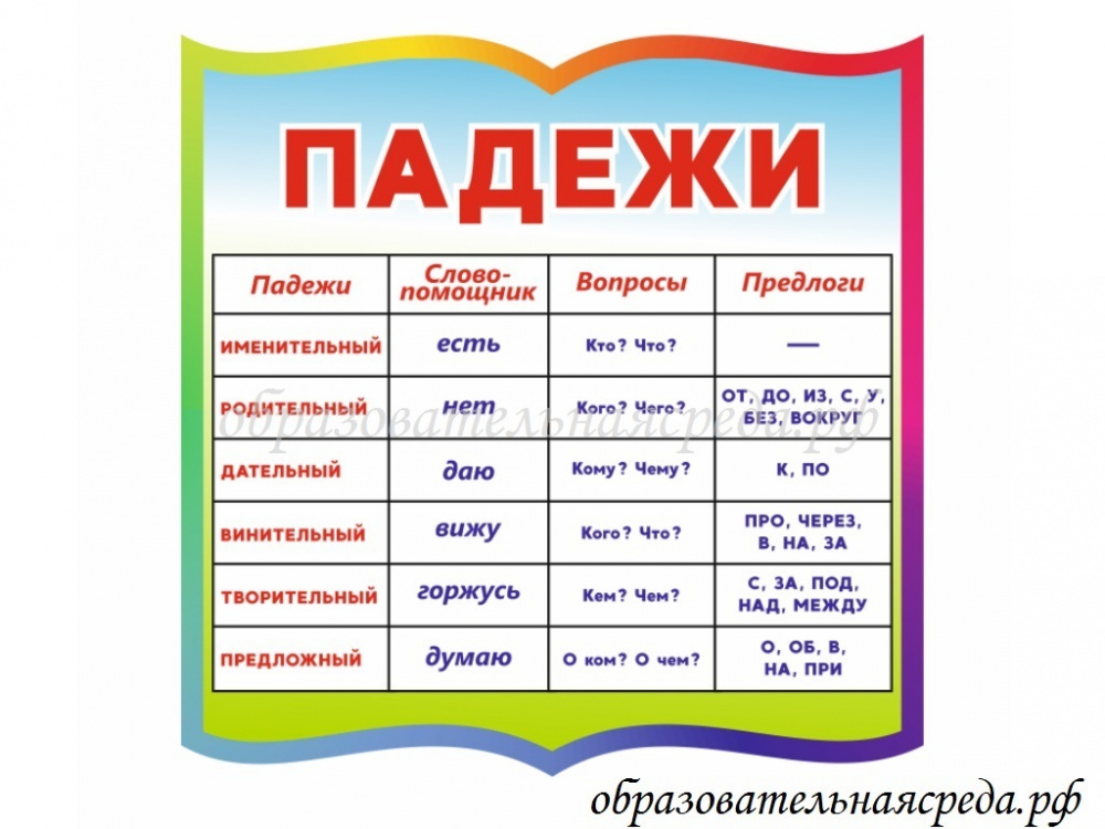 Стенд "Падежи" - отличное пособие для школьников. Стенд можно разместить на стенах школьного класса. Размер стенда 0,6*0,6м.
