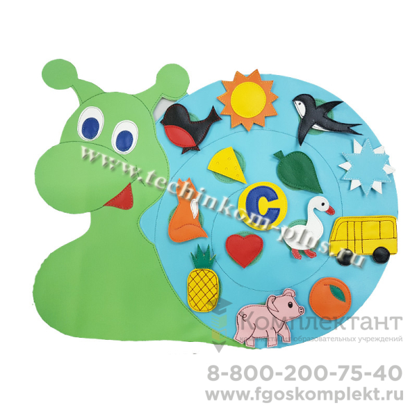 На домик улитки крепятся с помощью липучки буквы с картинками, гласные буквы для составления слогов, слов.