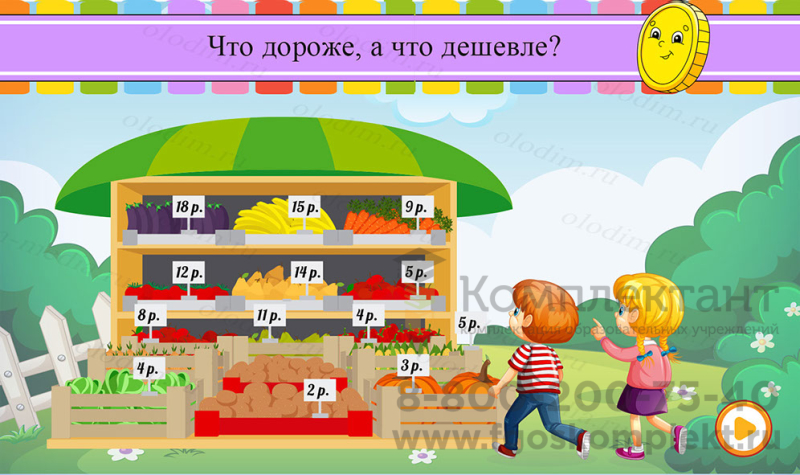 Комплект программного обеспечения "Olodim Финансовая грамотность" – это электронное учебное пособие для интерактивного оборудования, которое в игровой форме знакомит детей с основами экономики. Выполнение заданий позволяет не только легко запомнить и закрепить изучаемый материал, но и развить память, внимание и логическое мышление.