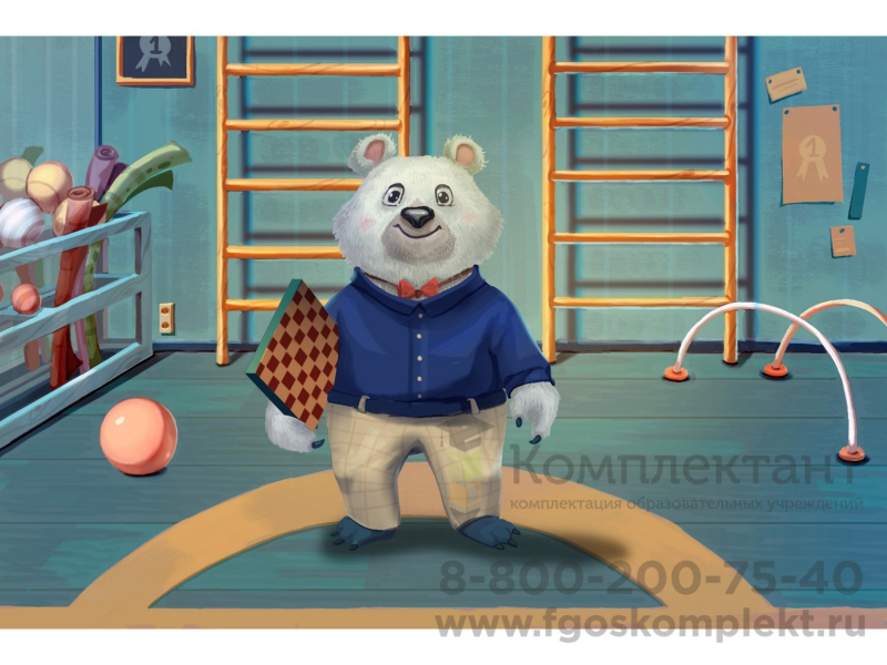 Белый медведь УМКА с помощью бесконтактного сенсорного контроллера поможет провести педагогу весёлую зарядку. Kinect улавливает характерные движения человека и передаёт их персонажу на экране. Ведущий вместе с медведем может показать ребятам: