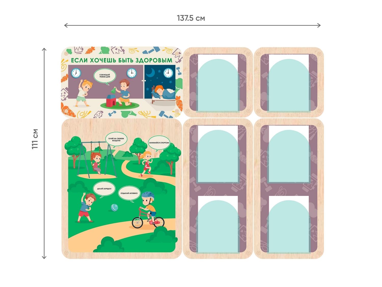 Информационный стенд — это незаменимый инструмент для декорирования стен и расширения образовательной среды в ДОУ. Красивые понятные картинки помогают детям получить важные знания о здоровье, а акриловые карманы для печатного материала обеспечивают связь с родителями, донося до них важную информацию. Стенд подходит для декорирования пространства коридоров и холлов в детских садах, медицинских центрах и организациях дополнительного детского образования.