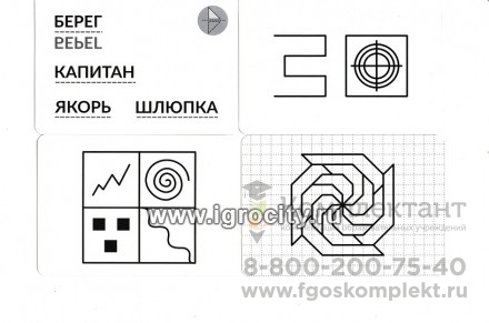 В дальней башне волшебного замка спрятаны сокровища. Башня закрыта на 4 замка, и чтобы открыть их, нужно получить 4 ключа. А для этого надо выполнить 4 непростых задания… Только внимательные и настойчивые герои смогут достичь цели. Кто первым доберется до сокровищ? Как играть Задача игроков — передвигать по полю свою фишку так, чтобы раньше других дойти до противоположной по диагонали клетки, отмеченной меткой-«башенкой», собрав при этом четыре разных по цвету «ключа». Четыре «ключа» — это правильно выполненные задания четырех типов: копирование, воспроизведение образца по памяти, преобразование изображения и выполнение задания по словесной инструкции. Чем полезна игра Игровой набор разработан нейропсихологами для поэтапного формирования пространственных представлений, внимания, памяти, умения действовать по инструкции. Карточки может использовать как специалист (нейропсихолог, психолог, логопед и т.д.) в коррекционных и диагностических целях, так и родитель или любой взрослый, задача которого — с пользой и интересом провести время вместе с ребенком или с небольшой группой детей. Что в комплекте карточки, из которых составляется поле; карточки с заданиями; мелкая и крупная клетка для ксерокопирования (также можно распечатать pdf-файл с клетками на компьютере, либо играть в тетради в клетку) памятка для игроков, отражающая структуру заданий. Внимание! Кубик и фишки в комплект не входят. Вы можете приобрести их отдельно или использовать фишки и кубик из других настольних игр.