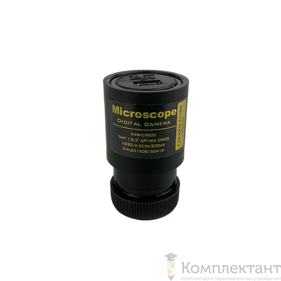 Цифровая камера разработана специально для работы с микроскопом. Материал корпуса — Пластик, Количество фотоприёмных элементов -5 МП, Размер сенсора- ½, 5″, Размер пикселя — 2,2×2,2мкм