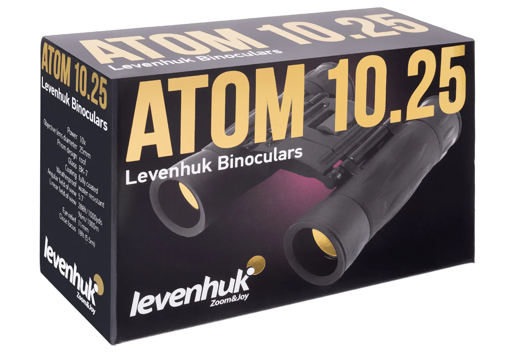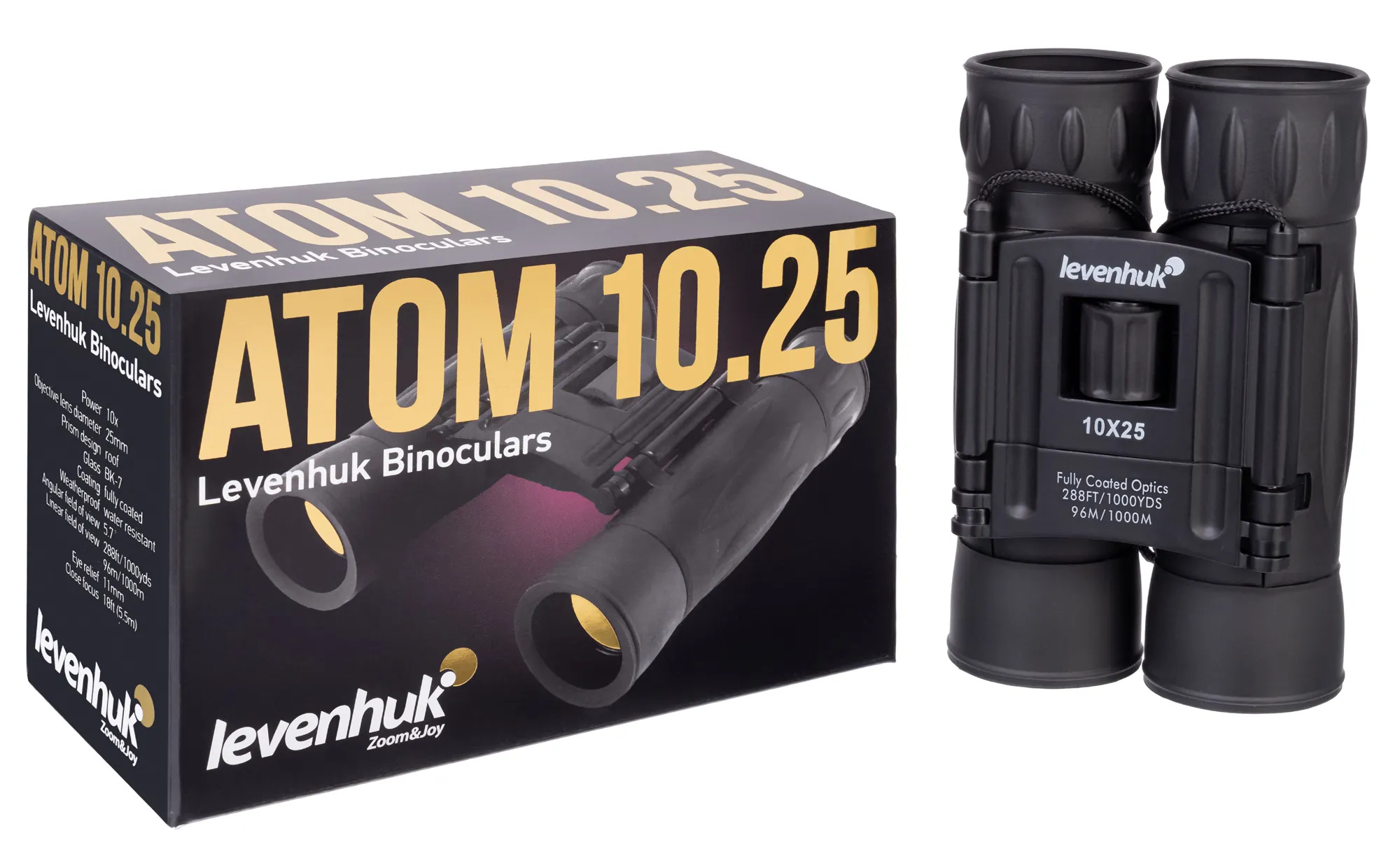 Удобство использования – еще один плюс бинокляLevenhuk Atom 10x25. Это бинокль начального уровня,поэтому он не требует сложной настройки: простоотрегулируйте межзрачковое расстояние и, если нужно,откорректируйте диоптрии. Для максимального комфорта вовремя наблюдений окуляры снабжены мягкими резиновыминаглазниками. Бинокль Levenhuk Atom 10x25 приятно держатьв руках. Резиновое покрытие корпуса не скользит в рукахи защищает бинокль от пыли, грязи и влаги.