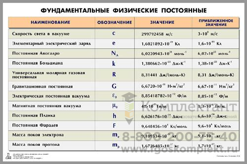 Таблица «Фундаментальные физические постоянные» для кабинета физики.