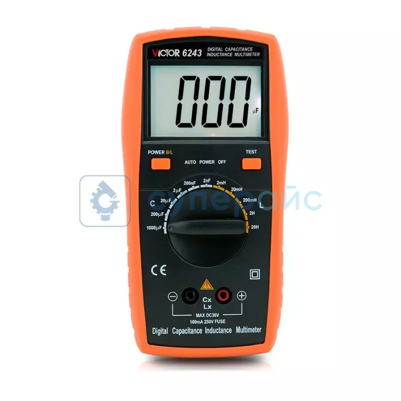 Комплектация | измеритель емкости и индуктивности Victor LC VC6243 – 1 шт крокодилы (комплект из двух шнуров) – 1 шт батарея 6F22 – 1 шт адаптерная вилка – 1 шт |