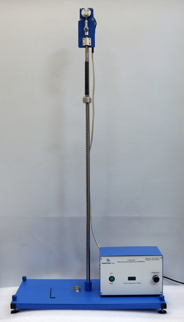 Учебная установка «Изучение вынужденных колебаний» предназначена для исследования процесса свободных и вынужденных колебаний. Установка позволяет определить круговую частоту собственных колебаний пружин с различными грузами, определить жесткость пружины, построить резонансные кривые для различных пружин.