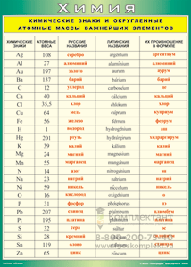Химические знаки и округленные атомные массы важнейших элементов 70*100 (винил) таблица