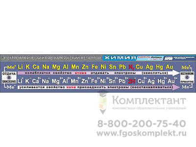 Таблица демонстрационная Электрохимический ряд напряжений металлов (винил 40х200)
