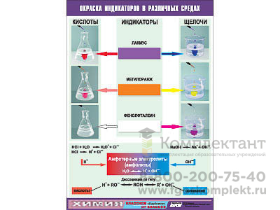 Таблица демонстрационная Окраска индикаторов в различных средах (винил 70x100)