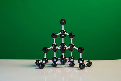 Модель собирается из черных шариков, обозначающих атомы, и соединительных трубок, обозначающих связи.