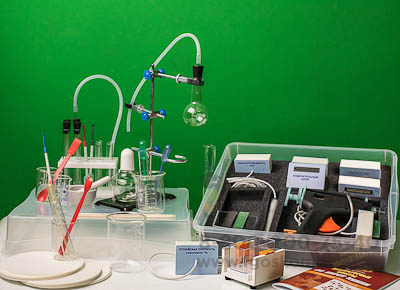 Комплект оборудования: стаканы химические стеклянные (50 мл – 2 шт., 100 мл – 4 шт., 150 и 250 мл – по 1 шт.) – 1 комплект, мерный цилиндр (50 мл) – 1 шт., фильтровальная бумага (диаметр 150 мм) – 1 уп., фарфоровая ступка с пестом – 1 шт., спиртовая горелка – 1 шт., ареометры (900, 1000, 1100 кг/м3) – по 1 шт., лучины – 3 шт., круглодонная колба (50 мл) – 1 шт., пробирки (14 и 16 мм – по 4 шт., 21 мм – 2 шт.) – 1 комплект, резиновые пробки (14,5 мм – 4 шт., 19 мм – 2 шт.) – 1 комплект, резиновые пробки с газоотводными трубками – 2 шт., штатив для пробирок – 1 шт., пластиковые шпатели – 2 шт., стеклянные палочки – 5 шт., пипетки – 3 шт., чашка Петри стеклянная (диаметр 100 мм) – 1 шт., штатив химический лабораторный – 1 шт., лоток раздаточный лабораторный – 1 шт., пособие «Лабораторные опыты по курсу химии» (автор Л. Е. Богданова - 56 страниц - печать офсетная, обложка полноцветная) – 1 шт., руководство по эксплуатации – 1 шт.