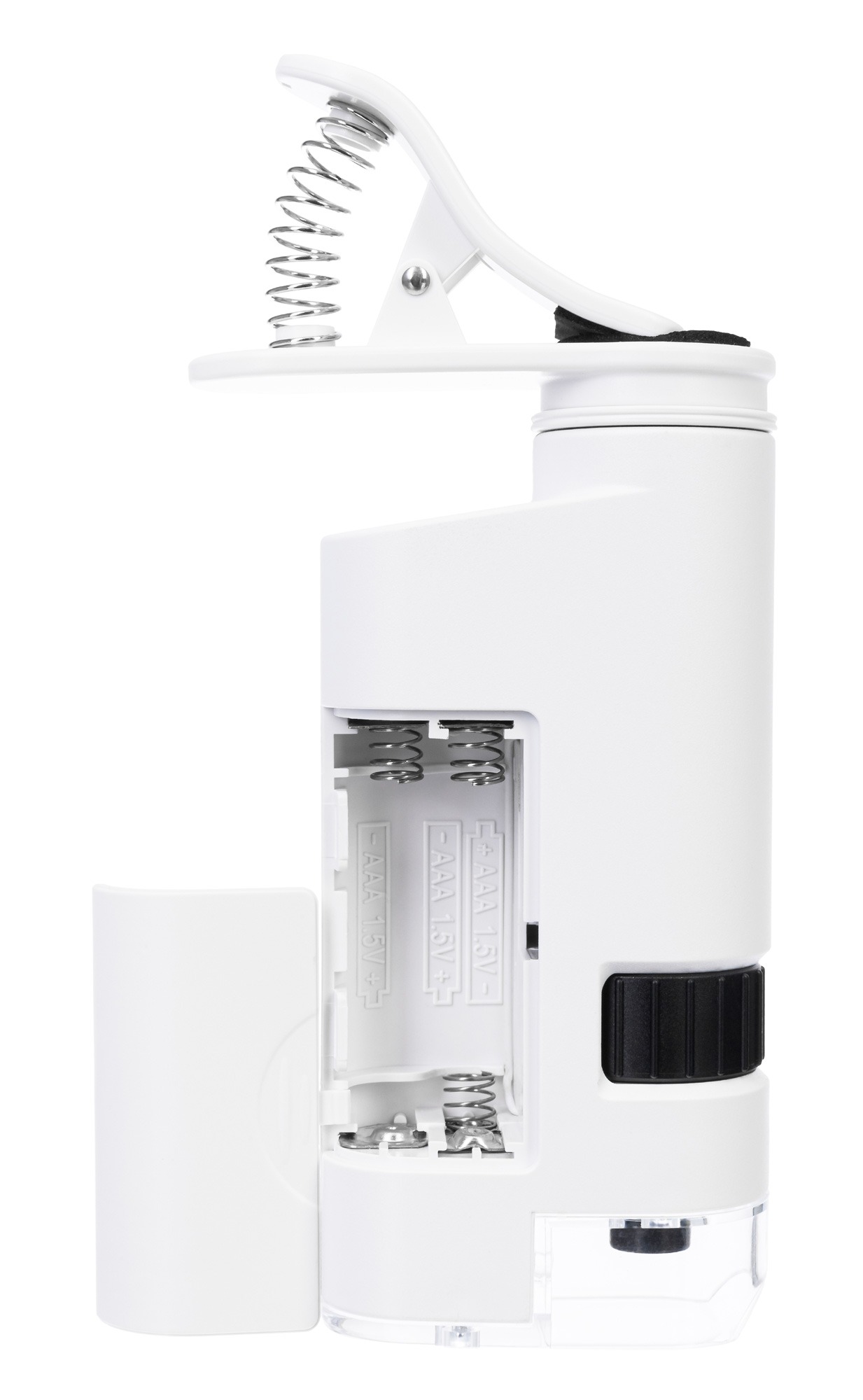 Модель Levenhuk Zeno Cash ZC16 снабжена зажимом для установки на мобильные устройства. Это позволяет использовать камеру смартфона или планшета для фото- и видеосъемки с увеличением. Картинка выводится прямо на экран телефона. Для работы при недостаточном освещении в конструкции микроскопа предусмотрена подсветка – яркий светодиод. Для его работы требуются батарейки (не входят в комплект). Для настройки резкости используется барабан грубой фокусировки.