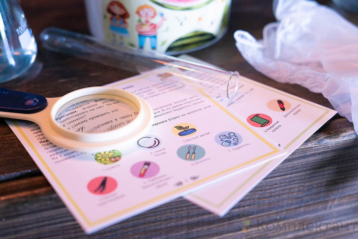• карточки-буклеты с подробными схемами, инструкции и иллюстрации по выполнению экспериментов, рекомендации по проведению практических занятий.