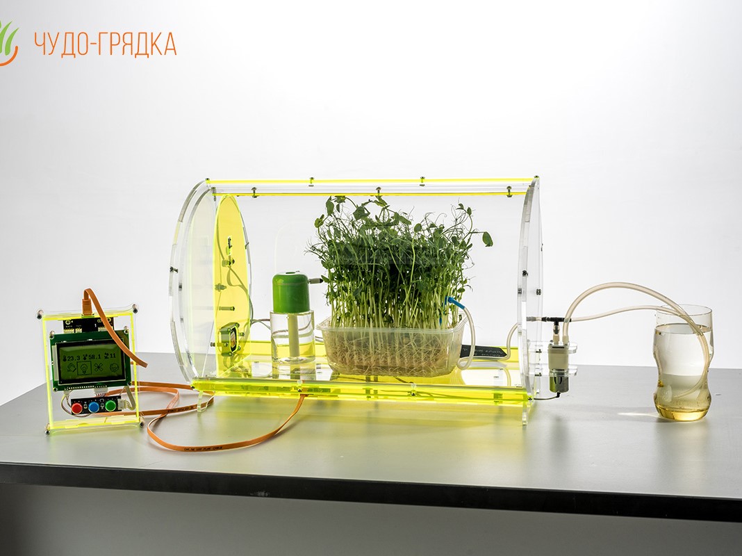 «Чудо-грядка» ANROtech – настольная модель теплицы, предназначенная для ботанического практикума. Создает необходимые для жизни растений условия (освещение, влажность воздуха и полив) в закрытом грунте, и позволяет управлять данными параметрами.