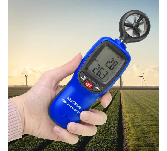 МЕГЕОН 11012 - это цифровой анемометр со встроенным термометром, предназначенный для быстрого определения параметров скорости потока воздуха с высокой точностью у вентиляций и на открытом пространстве.