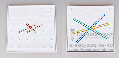 Изделие представляет собой пластиковый математический планшет размером 18х18 см, на одну сторону которого нанесена сетка из выступающих колышков шагом в 3 см, на другую – окружность диаметром 15 см и шагом в 2 см.