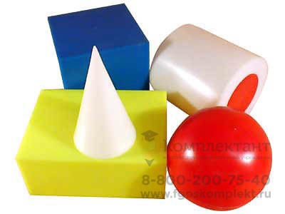 Комплектность: куб, конус, шар, цилиндр, полый цилиндр, параллелепипед - по 1 шт.