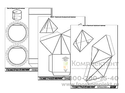 Комплектность: листы с развертками пространственных фигур – 11 шт., руководство по эксплуатации – 1 шт.