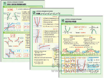 Комплект таблиц по алгебре раздат. Алгебра. Функции и графики (цвет., лам., 6 шт.)