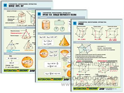 Комплект таблиц по геометрии раздат. "Стереометрия. Многогранники. Круглые тела" (цвет,лам, А4, 6шт)